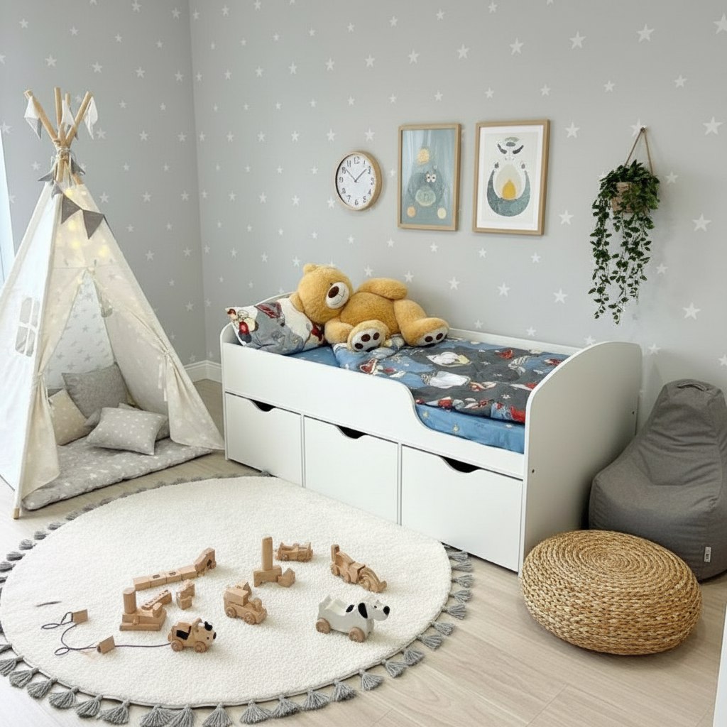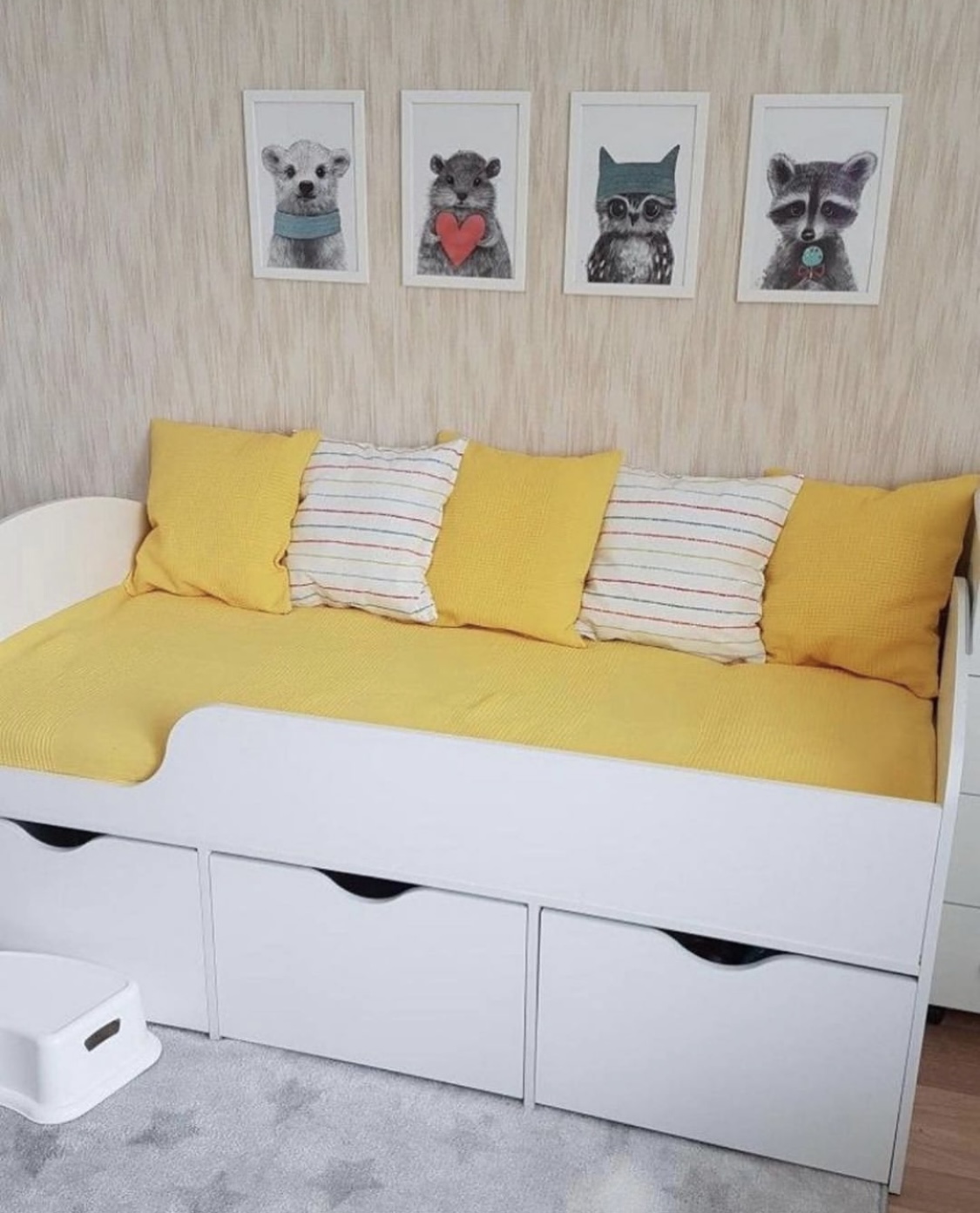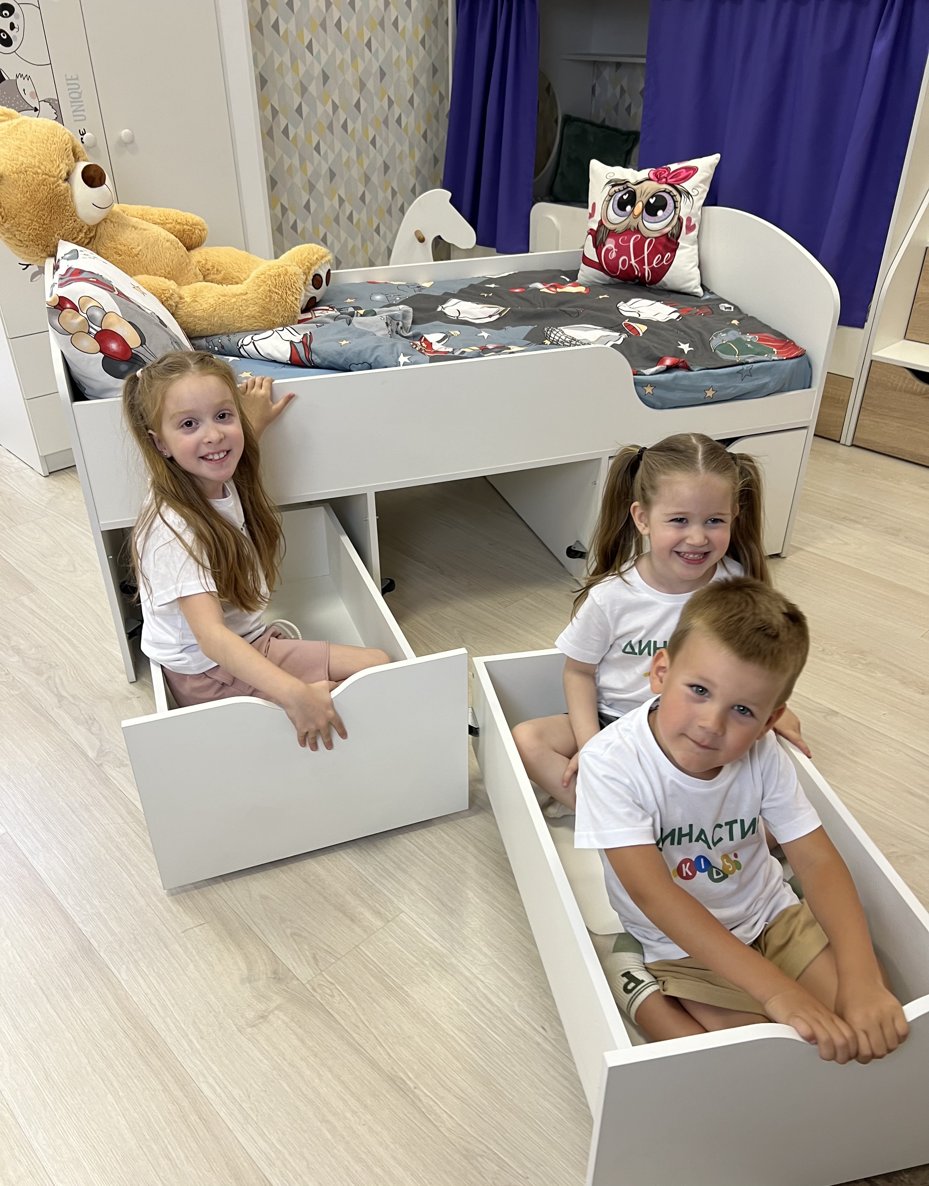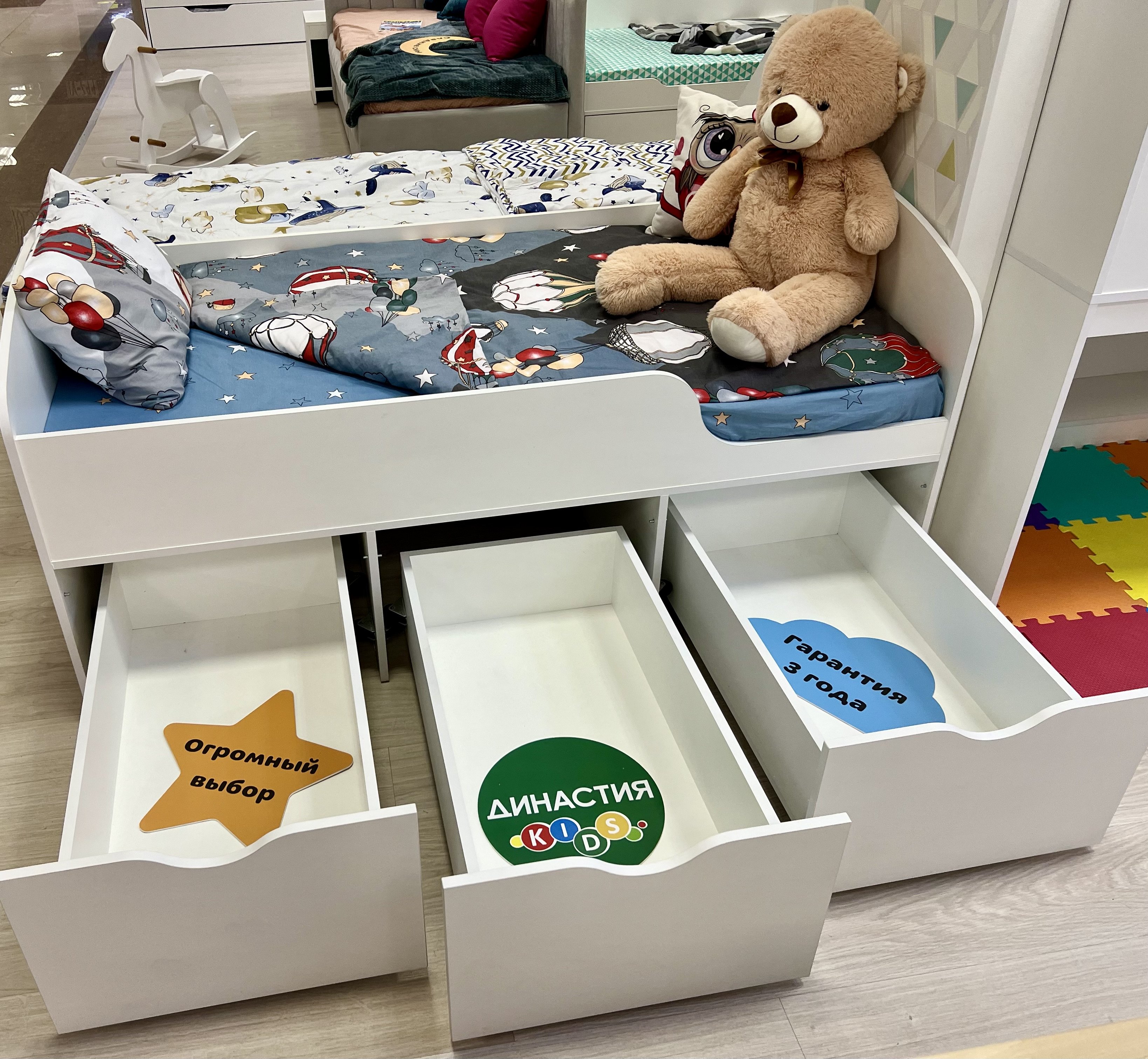 Три вместительных выдвижных ящика помогут всегда хранить личные вещи и игрушки ребенка в собранном виде.