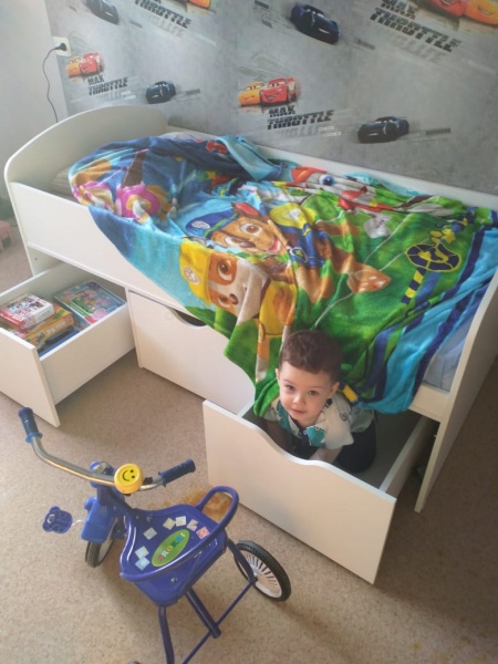<virtues>спасибо огромное за кроватку. Она классная! Ребенок спит с удовольствием. Ящики очень вместительные, легко выкатываются, можно спокойно помыть под кроватью. </virtues>