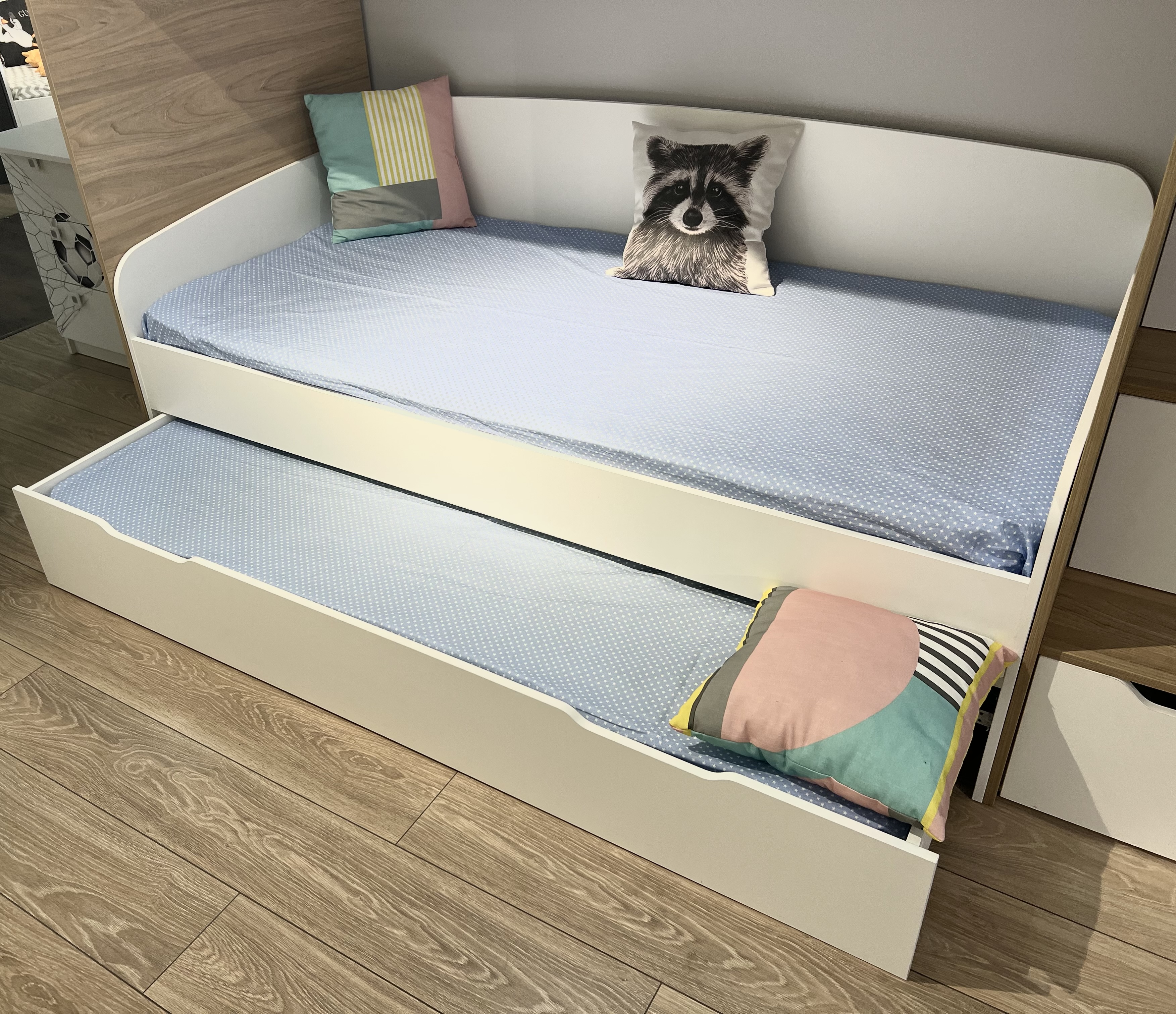 Нижний выдвижной ящик можно использовать как дополнительное спальное место или как ящик для хранения белья.