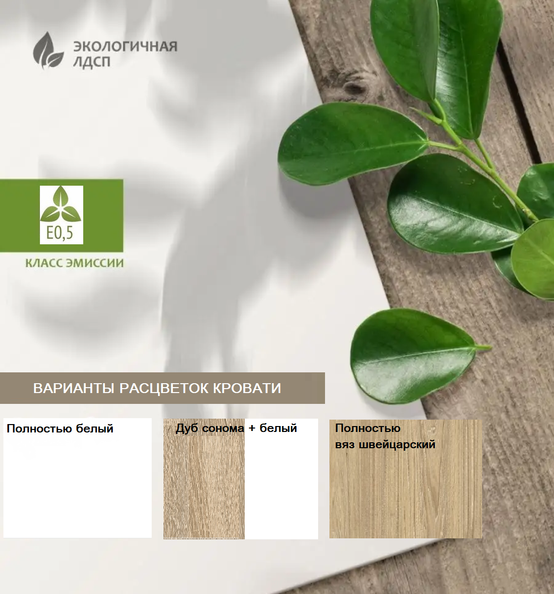 КРОВАТЬ ДОСТУПНА В РАСЦВЕТКАХ: дуб сонома + белый, полностью вяз швейцарский, полностью белый.