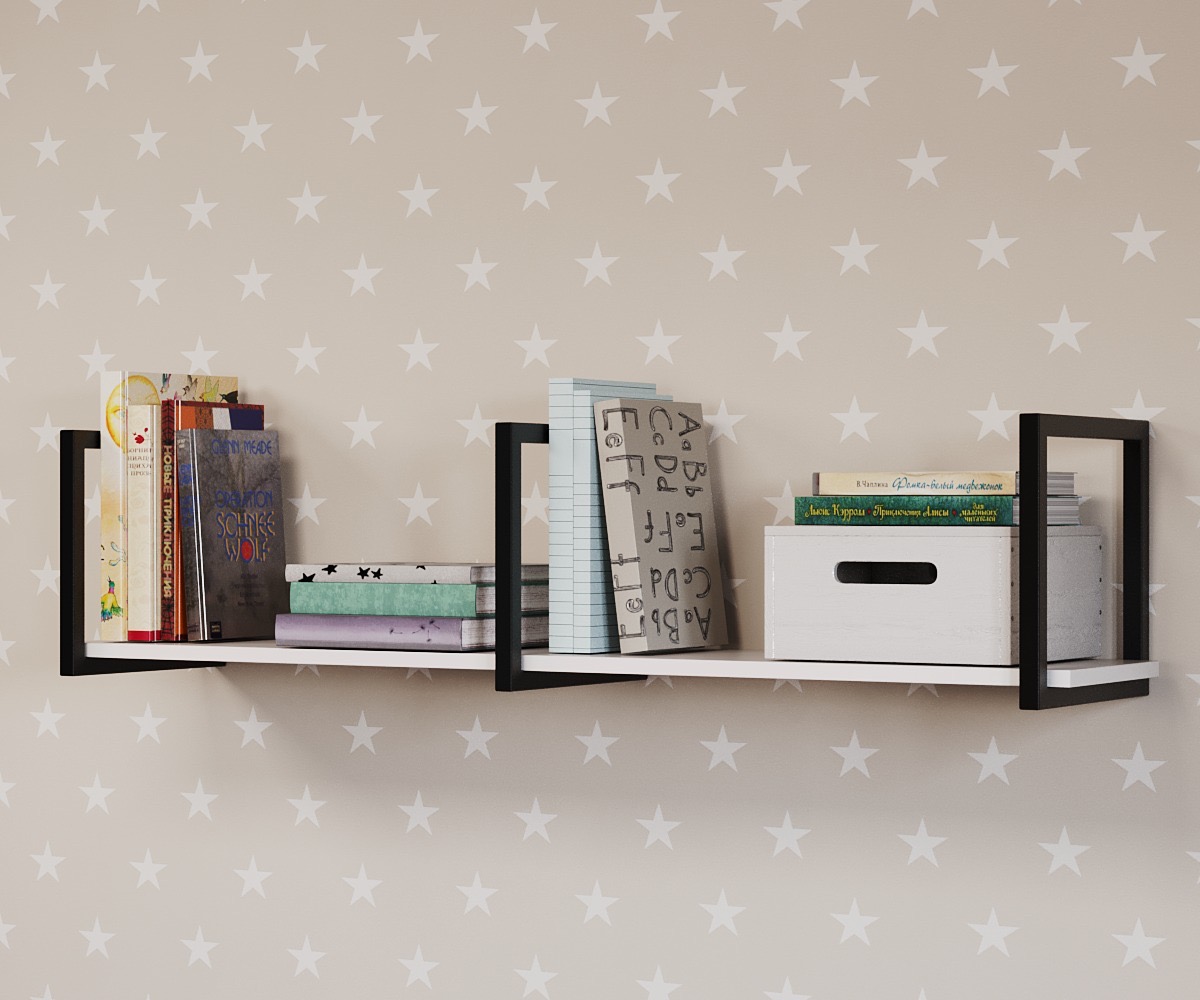 Открытая трендовая мини-полка идеально подходит для размещения над письменным столом школьника для хранения книг и учебников.