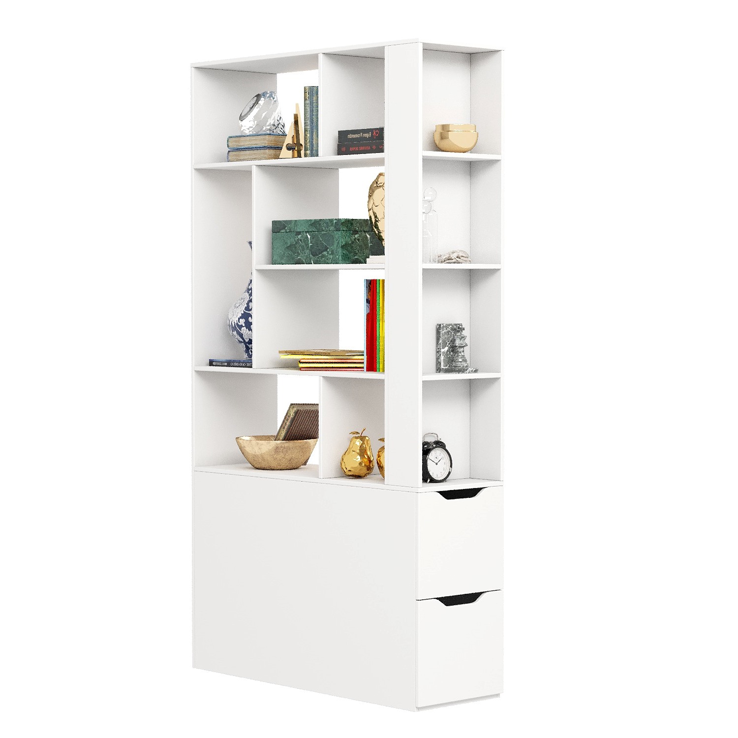 * В стеллаж встроены два выдвижных ящика на шариковых направляющих.