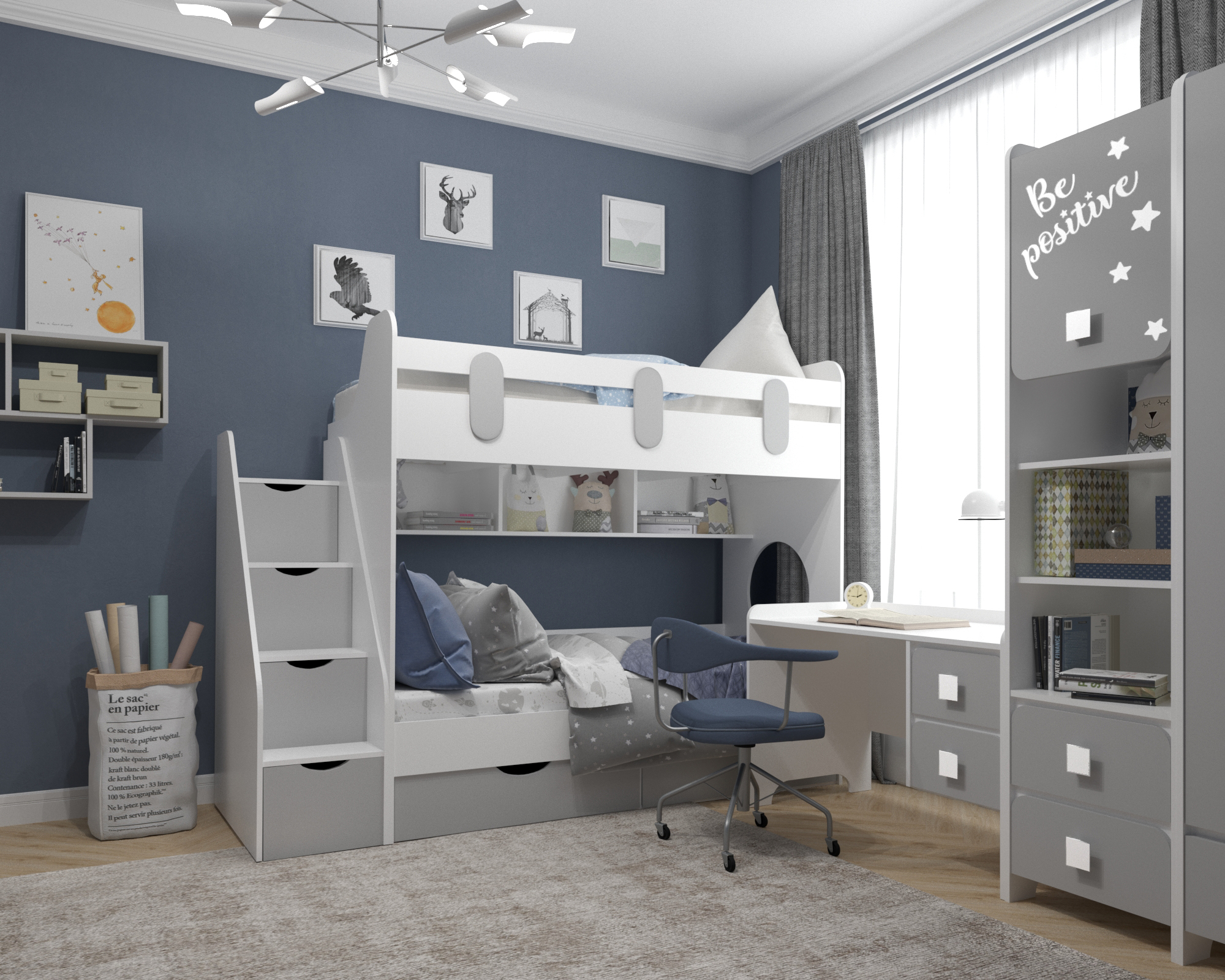 Модульные комнатыДвухъярусные кроватиТрехъярусные кровати Односпальные кроватиКровати-чердакиМягкие кровати и диваныЧетырехъярусные кровати Компьютерные и письменные столыНавесные-настенные полкиКомодыКомпьютерные кресла Комплекты мебелиМатрасыМебель для родителей