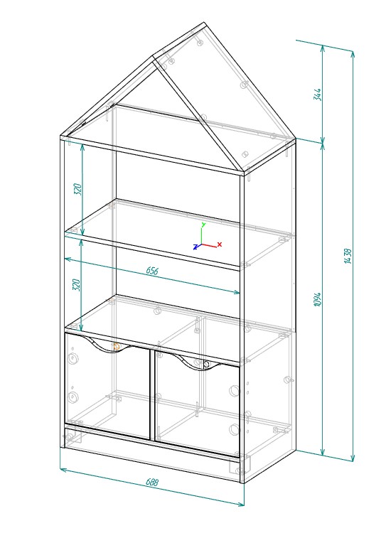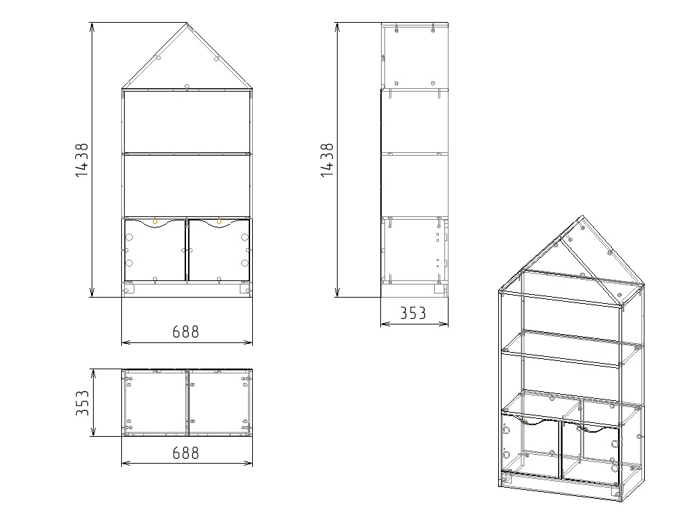 Стеллаж Домик 3 для книг и игрушек