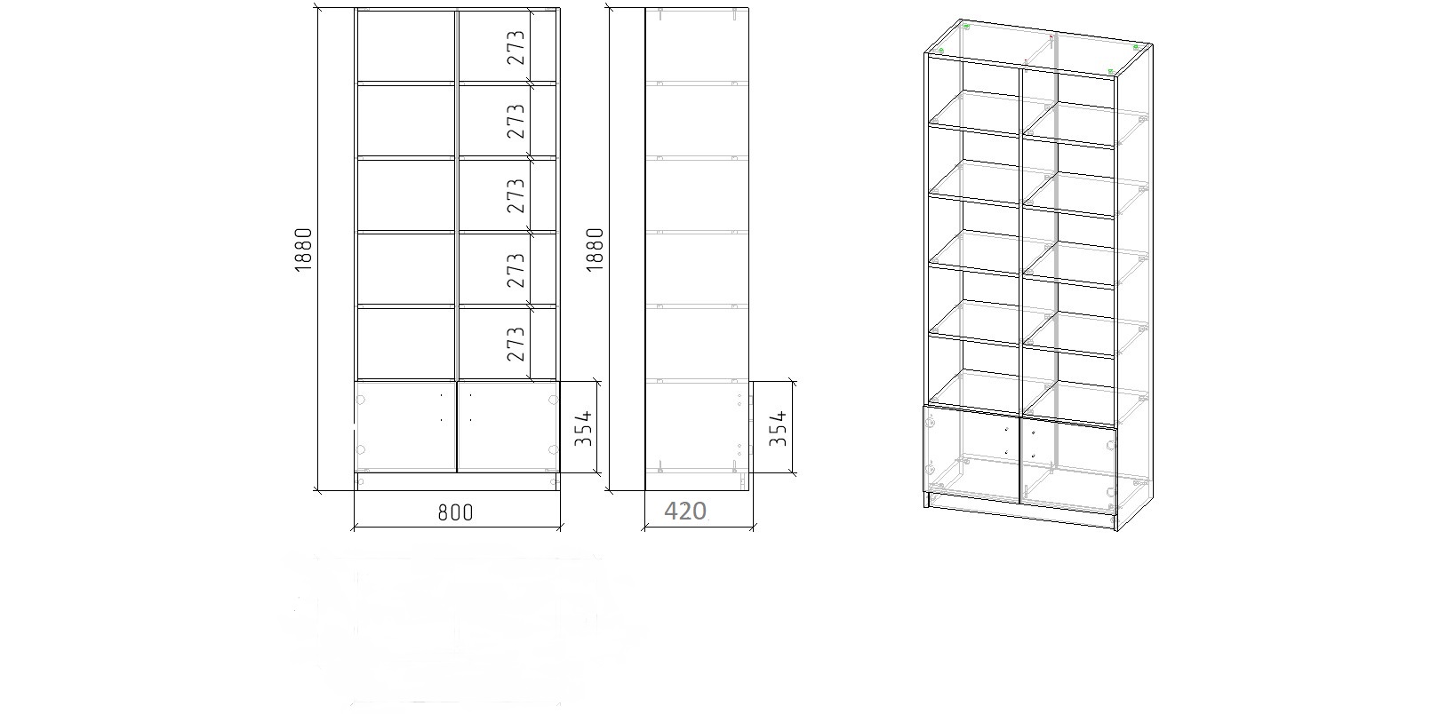 Габариты: высота 1880 х ширина 800 х глубина 420