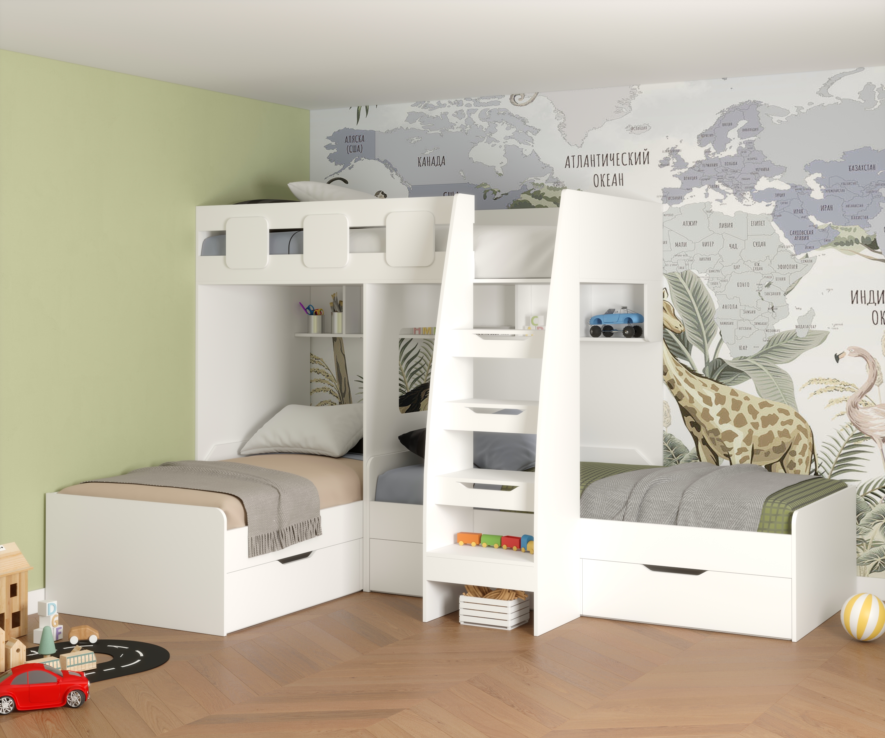 Цвет—Кровать 3-х ярусная Династия - цвет Белый
