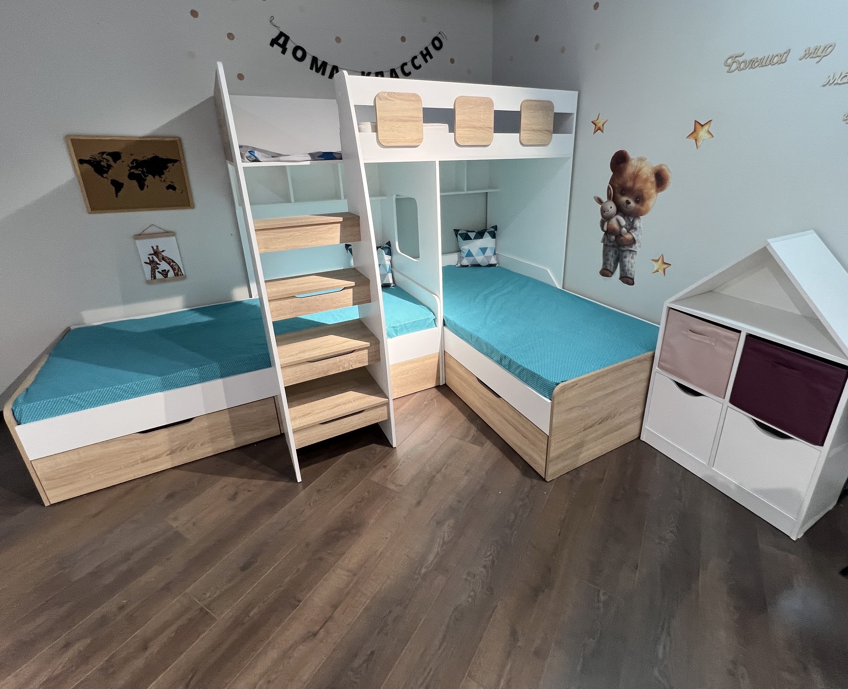 Подарите своим детям незабываемые моменты отдыха и веселья с 3-ярусной кроватью "Династия"! Воплощение безопасности и комфорта: