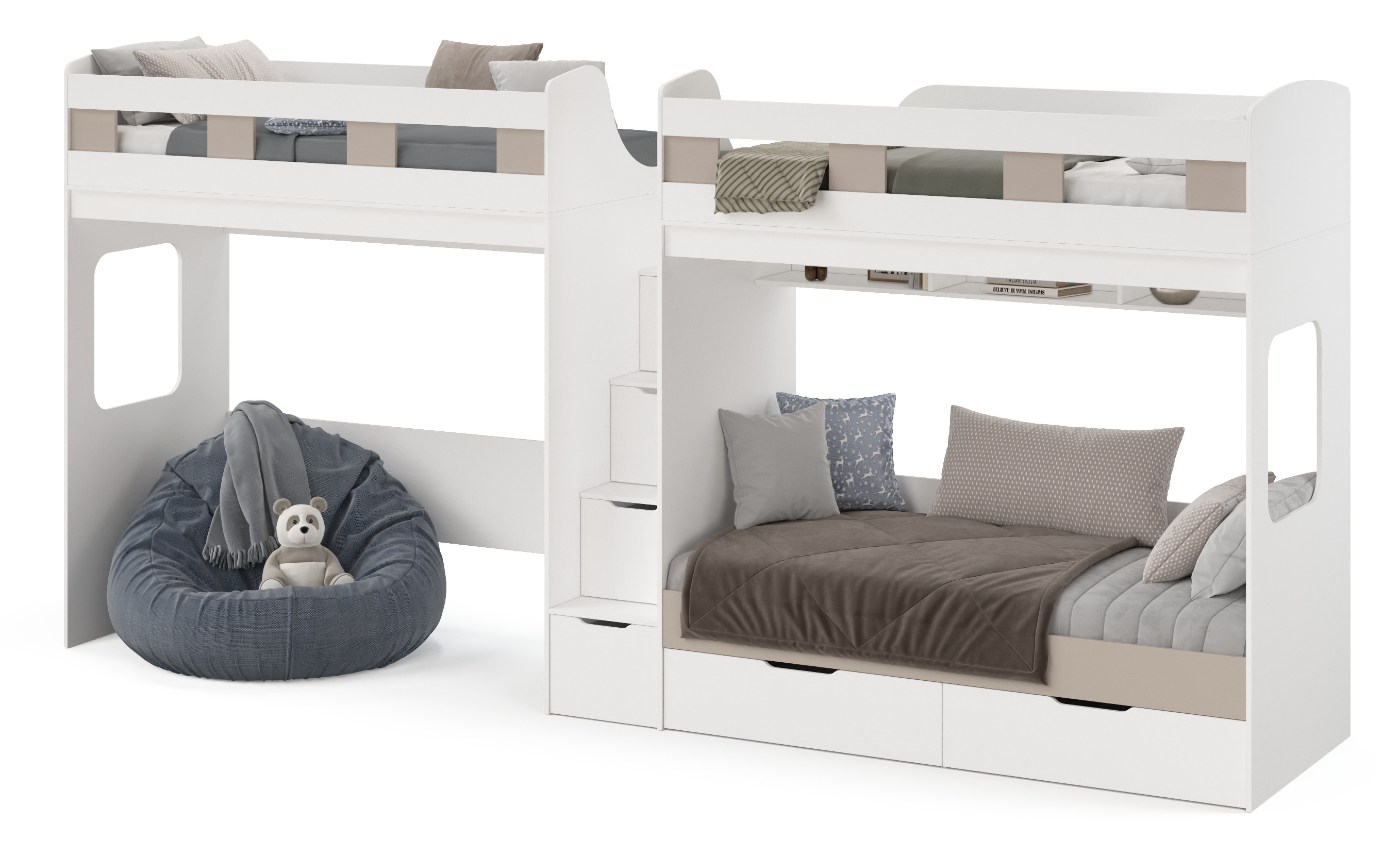 Высокая нагрузка на спальные места. Удобная лестница-комод. Высокие, безопасные бортики