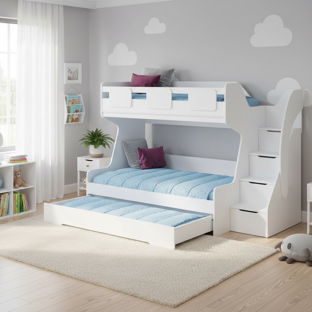 Увеличенное, просторное нижнее спальное место позволяет комфортно разместиться ребенку вместе со взрослым.