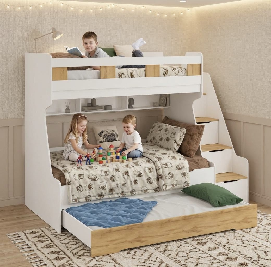 Кровать двухъярусная РУМ с дополнительным выдвижным третьим спальным местом - идеальное решение для детской комнаты!